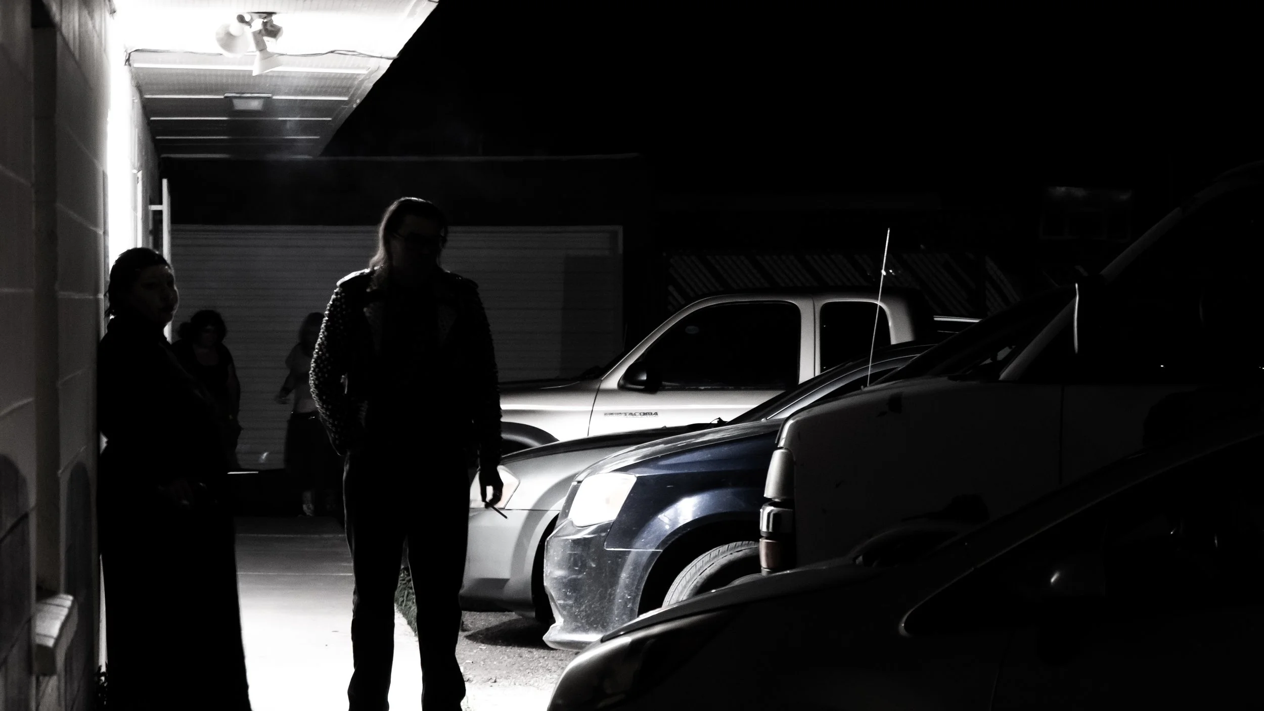 Smoke break between parts, post chest hook and needles. 18g and 16g. Raven and partner, John. Photo: Kit Kombat